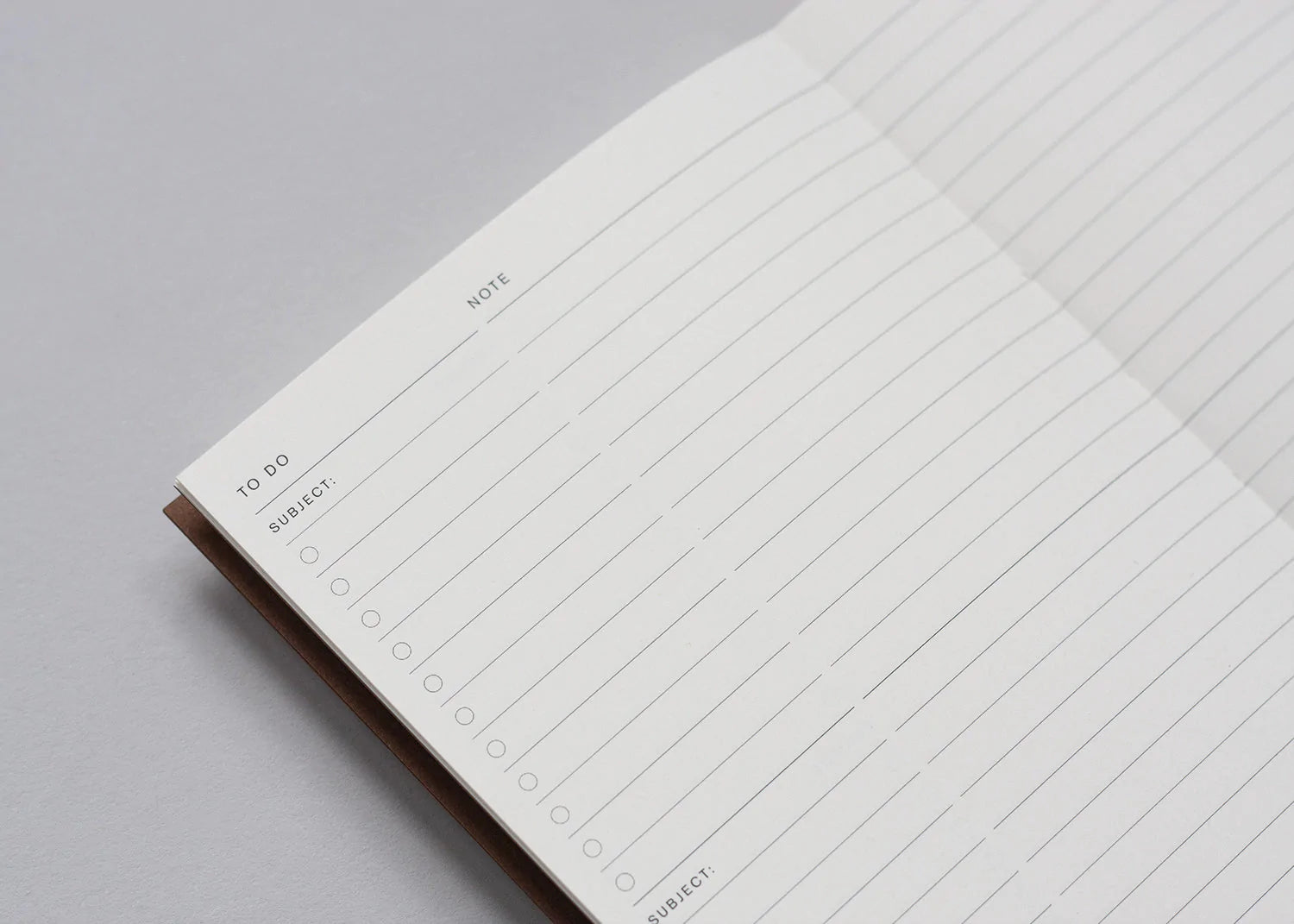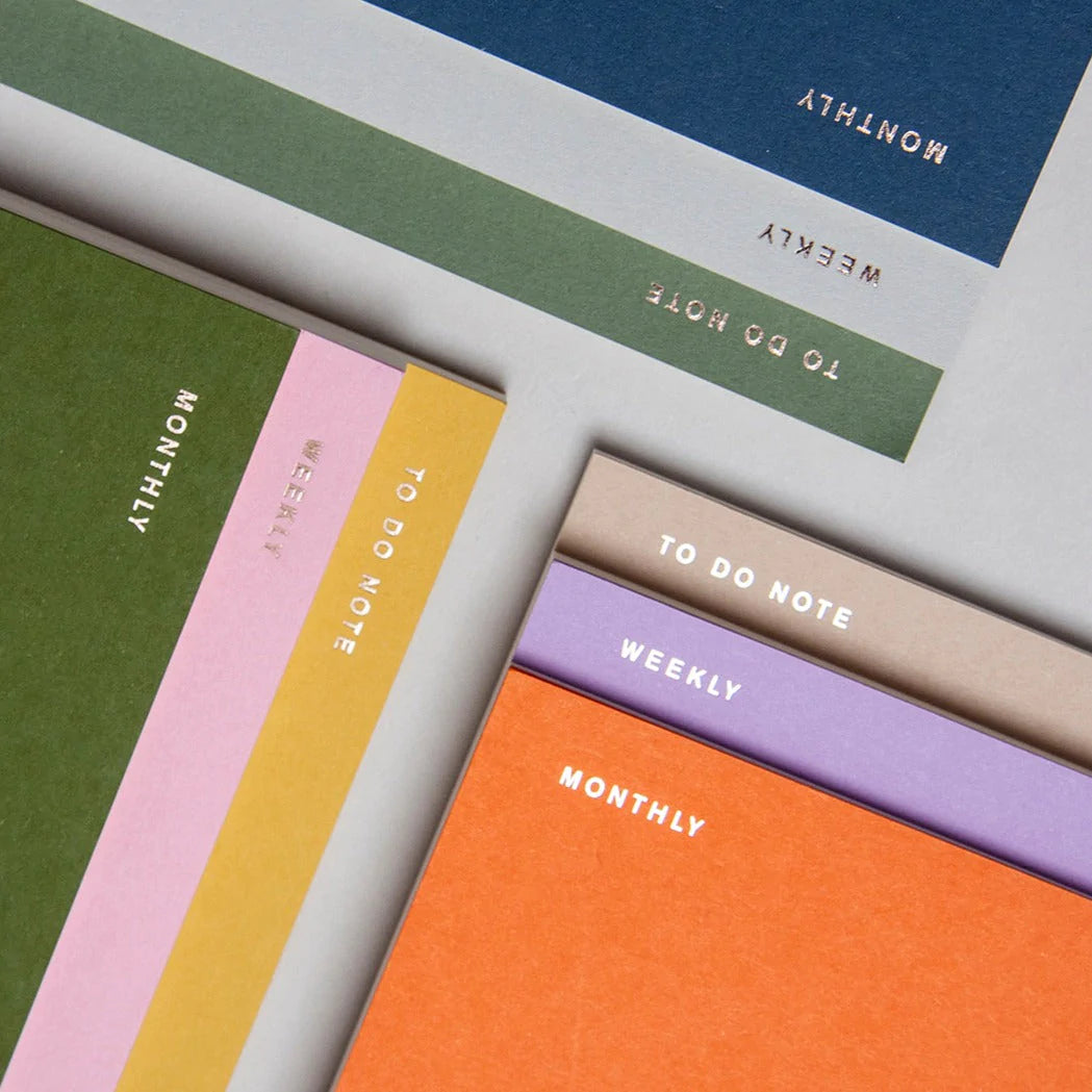 Each section of the notebook is finished with a rose gold foiling for the title and packaged in a recycled cardboard case.