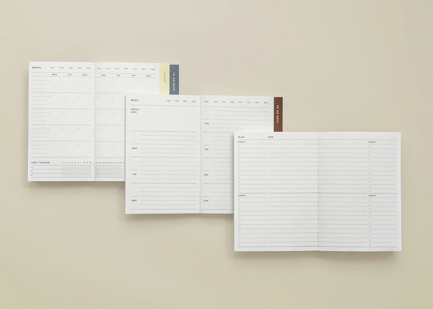The ultimate pocket sized planner that helps you manage your time and goals, from holistic to a microscopic view.