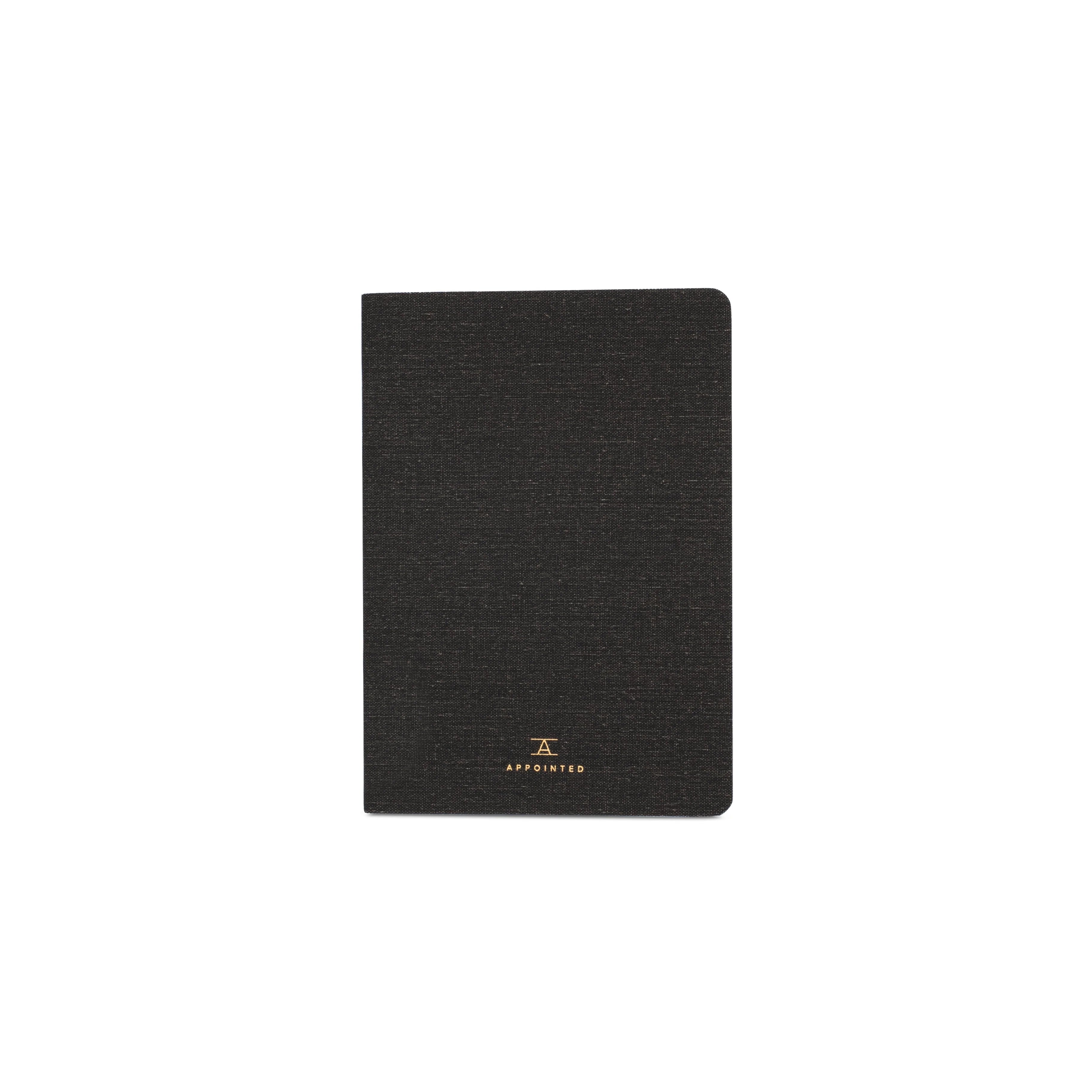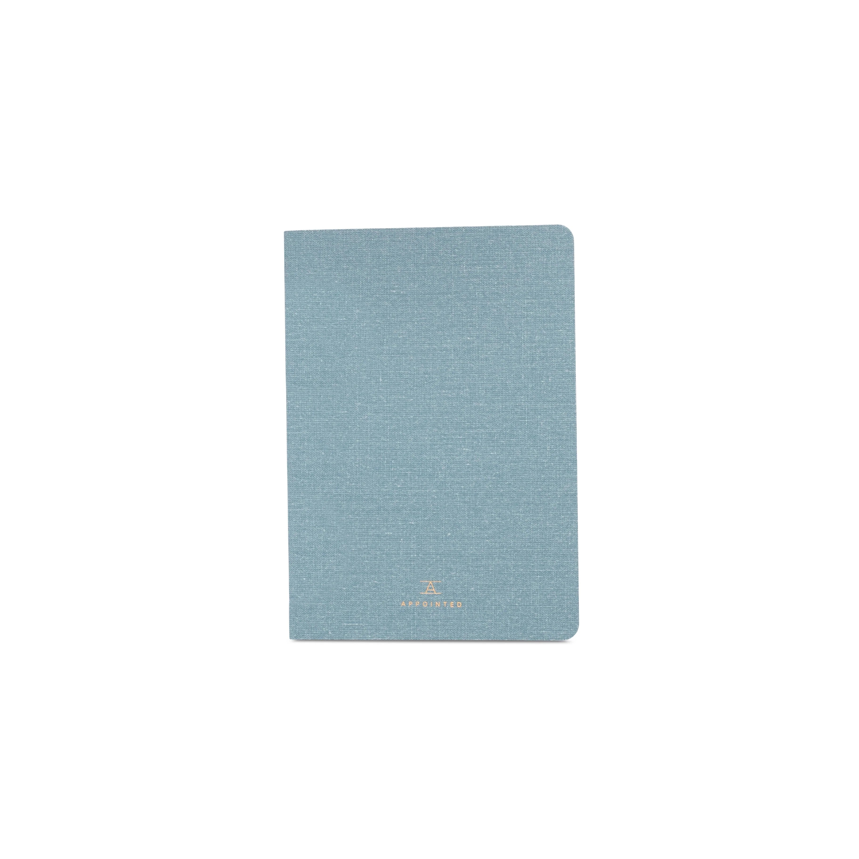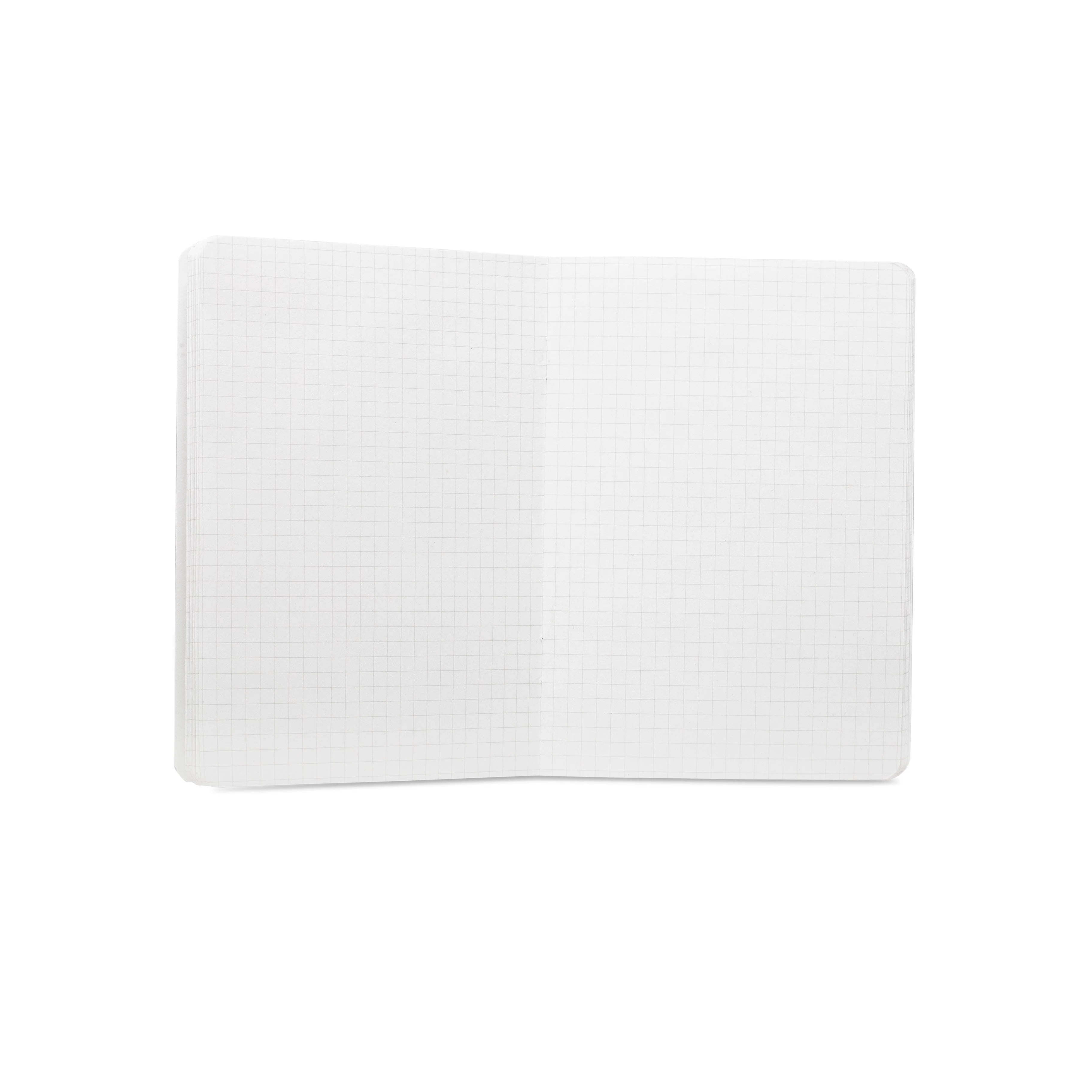 Three Mini Jotters for notes and sketches. Water resistant bookcloth cover, saddle stitch binding, and blank uncoated text weight stock. Available in a grid or blank ruling.
