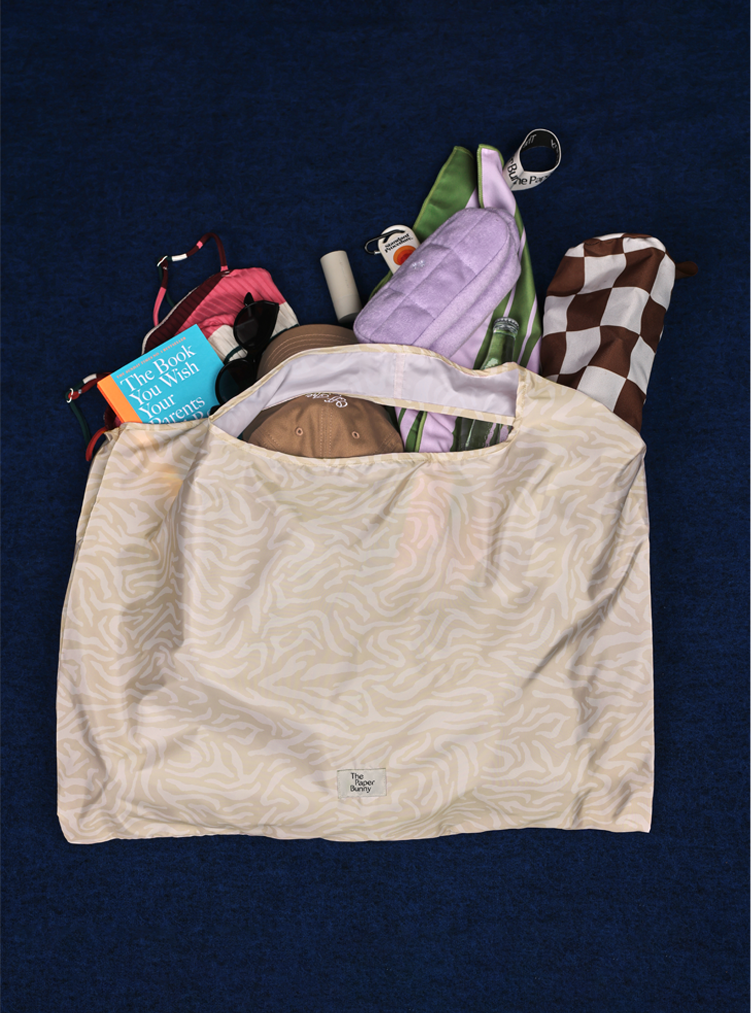 Featuring a new size and handle configuration that easily loops over your shoulder for the days you need to carry it all. From beach days to grocery runs, we've got you covered. Folds away easily and made from 100% recycled polyester.
